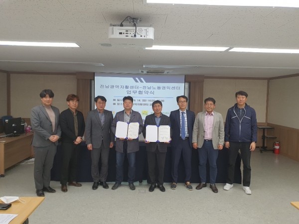 전남광역자활센터는 4월 14일 전남노동권익센터와 자활사업 참여주민의 심리적 근로환경 개선을 위한 지원에 상호 간 협력하고자 업무협약을 체결했다.
